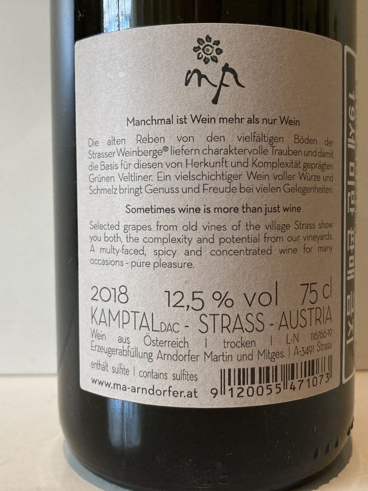 안도로퍼 "그뤼너 벨트뤼너 " 바인버그 Arndorfer "Gruner Veltliner", Strasser Weinberge 18
